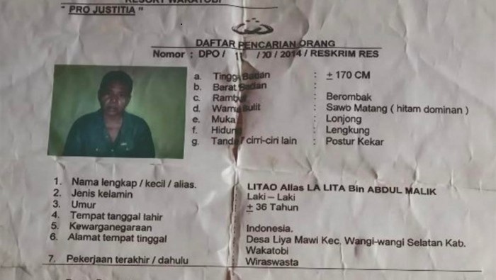Diketahui, Litao diduga terlibat kasus pembunuhan anak bernama Wiranto di Kelurahan Mandati I, Kecamatan Wangiwangi Selatan pada Oktober 2014 silam. Polisi telah menetapkan Litao sebagai DPO kala itu, namun belakangan malah menjadi anggota DPRD Wakatobi hasil Pileg 2024.