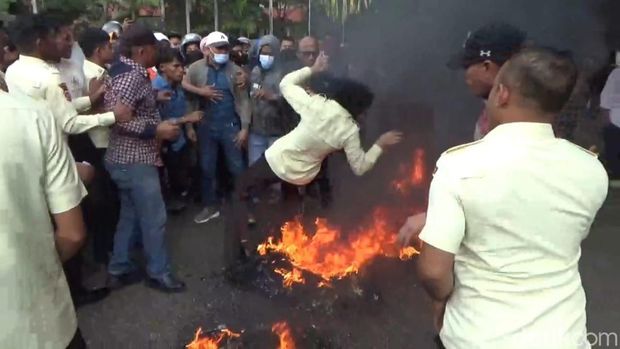 Suasana pun memanas hingga sekuriti kampus sempat melerai keduanya. Aksi demonstrasi diwarnai aksi pembakaran ban.